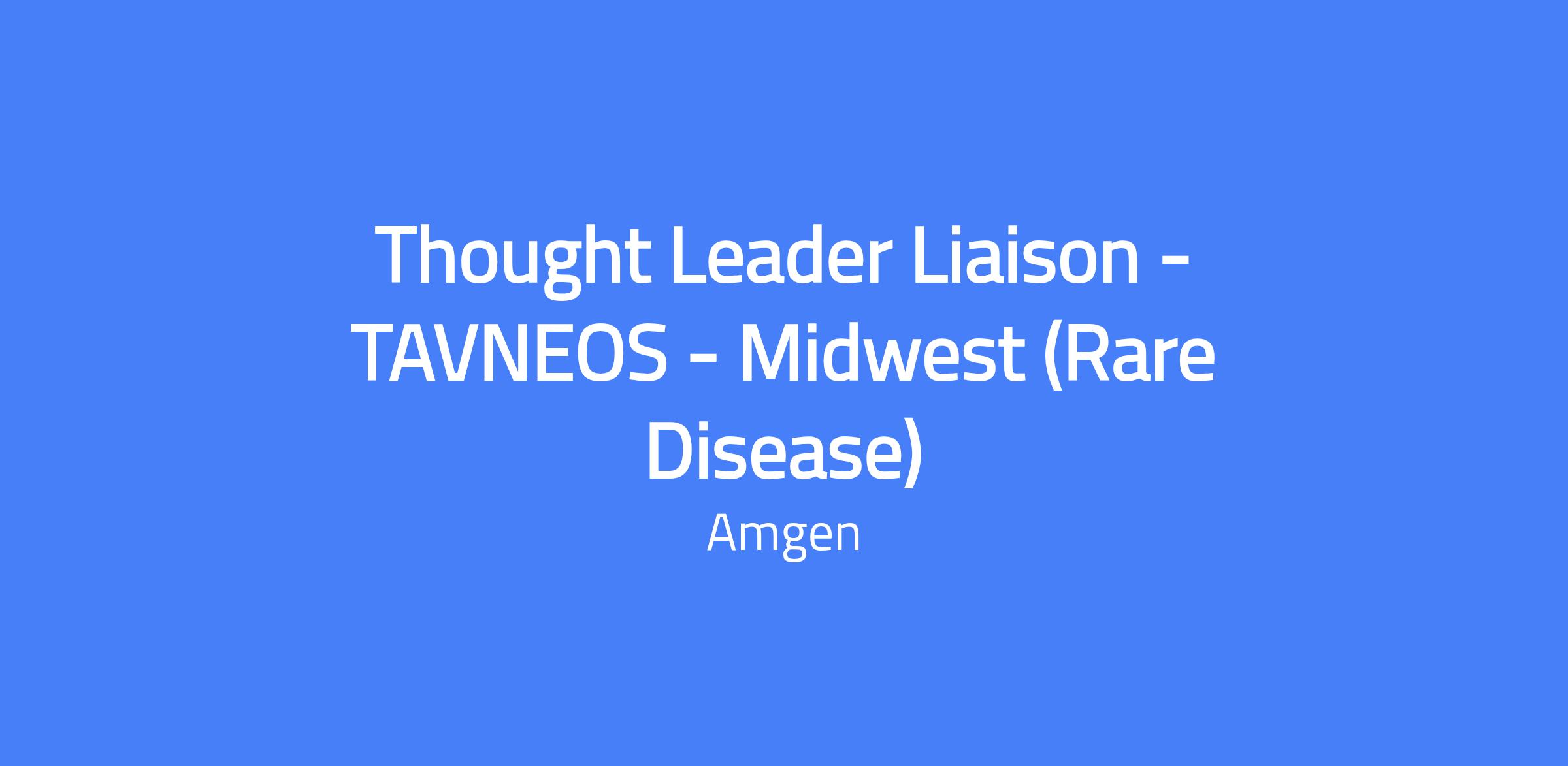 Thought Leader Liaison - TAVNEOS - Midwest (Rare Disease). This role focuses on maintaining and building relationships with external Opinion Leaders and large medical centers involved in vasculitis, and the broader Rheumatology and Nephrology provider landscape. The Thought Leader Liaison Sr. Manager will report to the Director Thought Leader Liaison and join the national team of Rare Disease Inflammation Thought Leader Liaisons in the Inflammation Business Unit, coordinating closely with field teams.