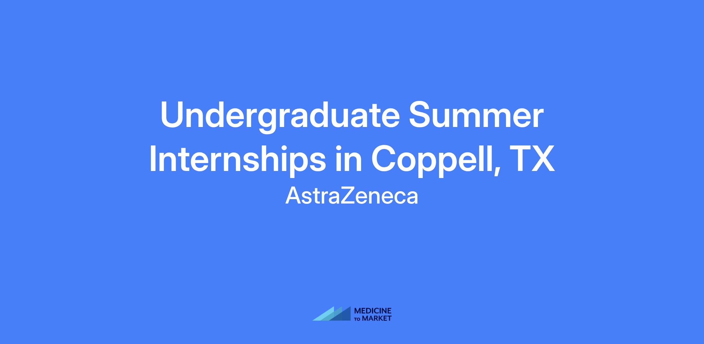 Undergraduate Summer Internships at AstraZeneca in Coppell, TX. Twelve-week paid, full-time internships (40 hours/week) with department-specific activities and a key project to lead, executed and reported to site leadership. Roles span multiple departments with professional development and exposure to AstraZeneca functions.