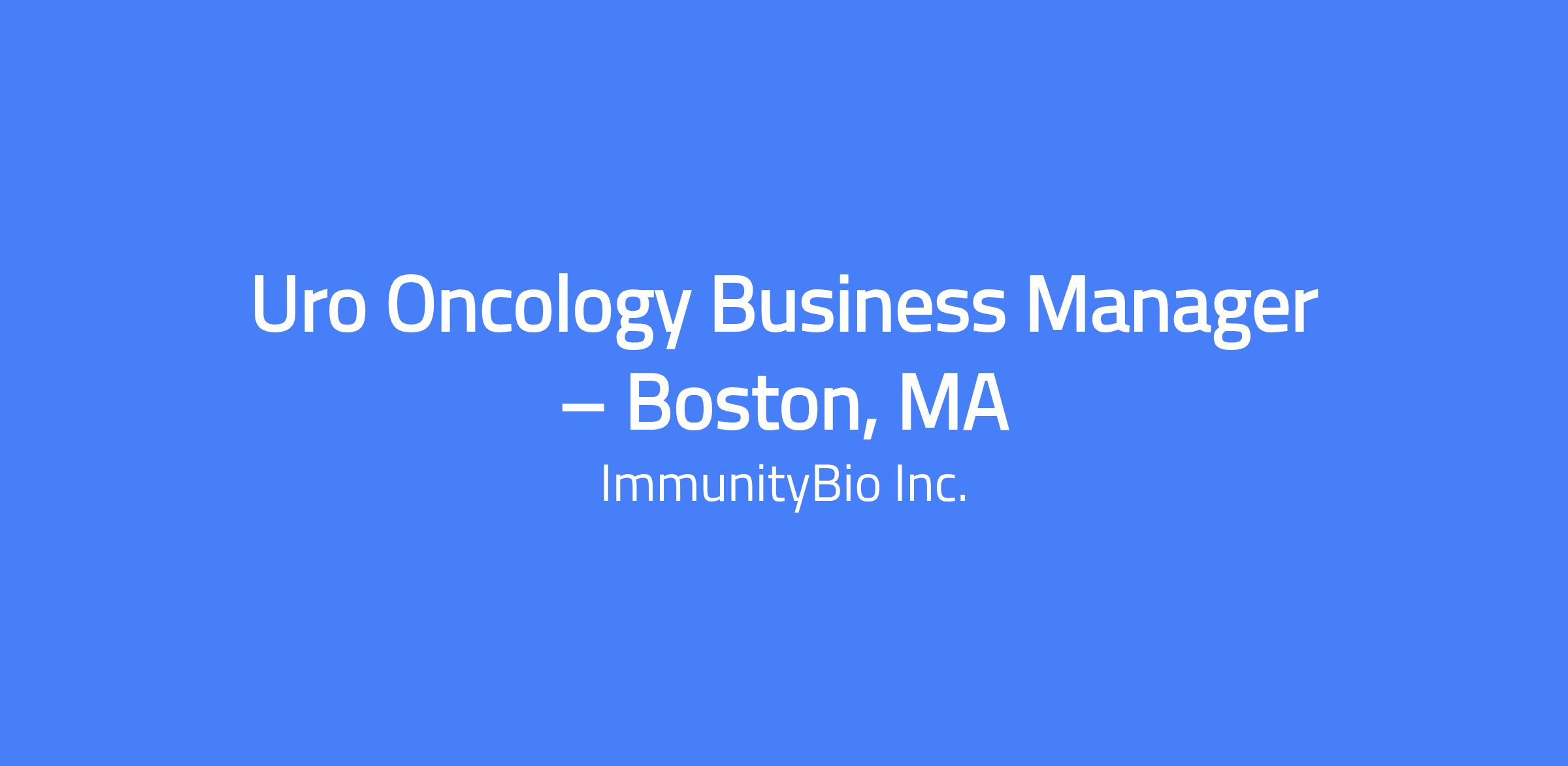 Company Overview ImmunityBio, Inc. (NASDAQ: IBRX) is a commercial-stage biotechnology company developing cell and immunotherapy products that are designed to help strengthen each patientâs natural immune system, potentially enabling it to outsmart the disease and eliminate cancerous or infected cells. We envision a day when we no longer fear cancer, but can conquer it, thanks to the biological wonder that is the human immune system. Our scientists are working to develop novel therapies that harness that inherent power by amplifying both branches of the immune system, attacking cancerous or infected cells today while building immunological memory for tomorrow. The goal: to reprogram the patientâs immune system and treat the host rather than just the disease. Why ImmunityBio? ⢠ImmunityBio is developing cutting-edge technology with the goal to transform the lives of patients with cancer and develop next-generation therapies and vaccines that complement, harness and amplify the immune system to defeat cancers and infectious diseases. ⢠Opportunity to join a publicly traded biopharmaceutical company with headquarters in Southern California. ⢠Work with a collaborative team with the ability to work across different areas of the company. ⢠Ability to join a growing company with professional development opportunities. Position Summary The Uro Oncology Business Managerâs main objective is to drive clinical conviction of Anktiva and achieve performance results within their territory. The role will focus on gaining breadth and depth of treatment adoption from the LUGPA clinics, Academic institutions, and IDN Hospitals who treat and manage early-stage bladder cancer patients within their territory. The Uro Oncology Business Manager will need to understand the unique market opportunities of their geography, including account affiliations and decision makers, prescriber influencers, and treatment pathways. Essential Functions Execute sales strategy to drive Anktivaâs treatment adoption across all clinics and prescribers who treat and manage patients with approved indicators. Build trusting customer relationships and provide clear educational information to communicate efficacy results and define appropriate patient identification. Develop and maintain meaningful disease state knowledge and product expertise to provide value proposition to the customer. Analyze account performance, identify prescriber adoption barriers, and propose solutions to address barriers. Collaborate with ImmunityBio matrix partners to identify opportunities and/or change territory tactics. Accountable for the training of all relevant HCPâs on Anktiva dosing, administration, and overall treatment expectations for all accounts within the territory. Utilize approved resources to educate and answer questions regarding reimbursement and contracting information. Appropriately utilize company approved marketing tools and resources to craft a targeted approach to manage accounts and geographic territory. Plan, lead, and execute speaker programs for the top providers and clinics within the territory. Represent product in a professional, compliant, and ethical manner. Complete all administration, reporting, and training tasks proficiently and on time. Perform other duties as assigned. Education & Experience Bachelorâs degree with 6+ years in healthcare, pharmaceutical, biotech, or medical device companies required. 4+ years urological oncology/urology experience required Proven track record of success and experience in start-up biopharma and/or diagnostics company preferred Comprehension of the buy and build model preferred Must possess and maintain a current valid driver's license required Knowledge, Skills, & Abilities Communicate effectively with social/emotional/relational intelligence, both verbally and written, with team members, leadership, and customers. Create genuine relationships with customers based on integrity and trustworthiness. Ability to be a continual learner, open to innovative ideas and solutions while collaborating with cross-functional commercial members. Ability to gain consistent access and develop strong professional relationships with health care providers in community and hospital settings. Understand the complexities and subtleties of the urologic oncology marketplace and customer segments. Demonstrate strong business acumen, analytics, and account management skills. Effective prioritization, flexibility and change management abilities in a dynamic environment. Candidates will have integrity, be inclusive and collaborative. Working Environment / Physical Environment Remote The willingness and ability to travel overnight Requires driving a personal vehicle on behalf of the Company Must successfully complete a motor vehicle record check upon hire and annually thereafter Must maintain a standard form of automobile liability insurance that meets the companyâs required minimum coverage limits (currently $250,000/$500,000 bodily injury liability and $100,000 property damage liability), Must provide proof of insurance coverage that meets these requirements upon hire and annually thereafter This position is eligible for a discretionary bonus and equity award. The annual base pay range for this position is below. The specific rate will depend on the successful candidateâs qualifications, prior experience as well as geographic location. $195,700 (entry-level qualifications) to $195,700 (highly experienced) annually The application window is anticipated to close on 60 days from when it is posted or sooner if the position is filled or closed. ImmunityBio employees are as valuable as the people we serve. We have built a resource of robust benefit offerings to best support the total wellbeing of our team members and their families. Our competitive total rewards benefits package, for eligible employees, include: Medical, Dental and Vision Plan Options ⢠Health and Financial Wellness Programs ⢠Employer Assist
