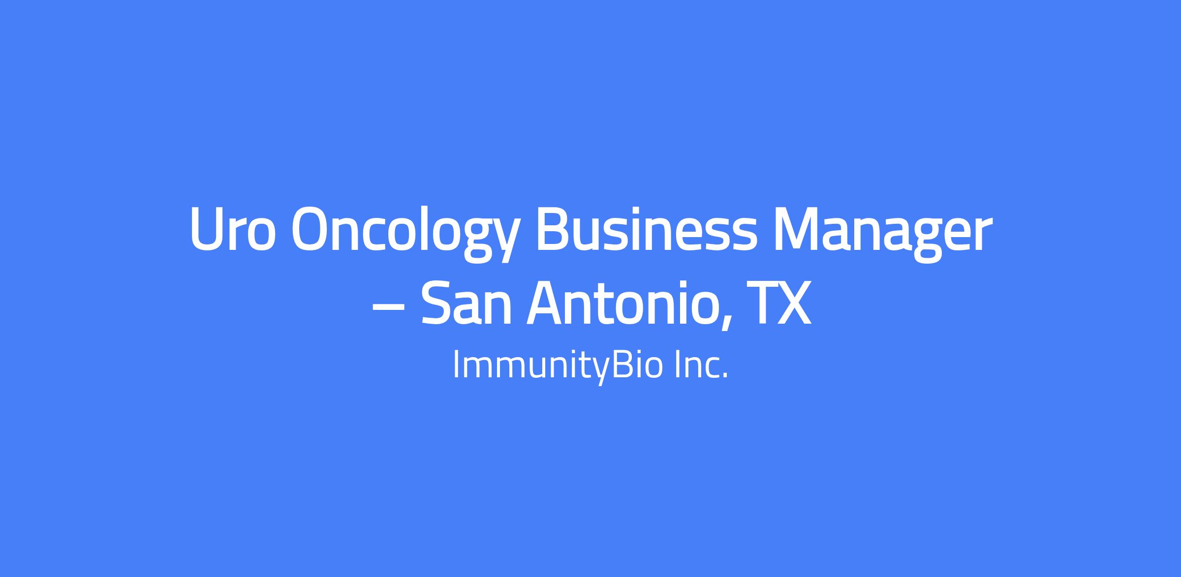Company Overview ImmunityBio, Inc. (NASDAQ: IBRX) is a commercial-stage biotechnology company developing cell and immunotherapy products that are designed to help strengthen each patientâs natural immune system, potentially enabling it to outsmart the disease and eliminate cancerous or infected cells. We envision a day when we no longer fear cancer, but can conquer it, thanks to the biological wonder that is the human immune system. Our scientists are working to develop novel therapies that harness that inherent power by amplifying both branches of the immune system, attacking cancerous or infected cells today while building immunological memory for tomorrow. The goal: to reprogram the patientâs immune system and treat the host rather than just the disease. Why ImmunityBio? ⢠ImmunityBio is developing cutting-edge technology with the goal to transform the lives of patients with cancer and develop next-generation therapies and vaccines that complement, harness and amplify the immune system to defeat cancers and infectious diseases. ⢠Opportunity to join a publicly traded biopharmaceutical company with headquarters in Southern California. ⢠Work with a collaborative team with the ability to work across different areas of the company. ⢠Ability to join a growing company with professional development opportunities. Position Summary The Uro Oncology Business Managerâs main objective is to drive clinical conviction of Anktiva and achieve performance results within their territory. The role will focus on gaining breadth and depth of treatment adoption from the LUGPA clinics, Academic institutions, and IDN Hospitals who treat and manage early-stage bladder cancer patients within their territory. The Uro Oncology Business Manager will need to understand the unique market opportunities of their geography, including account affiliations and decision makers, prescriber influencers, and treatment pathways. Essential Functions Execute sales strategy to drive Anktivaâs treatment adoption across all clinics and prescribers who treat and manage patients with approved indicators. Build trusting customer relationships and provide clear educational information to communicate efficacy results and define appropriate patient identification. Develop and maintain meaningful disease state knowledge and product expertise to provide value proposition to the customer. Analyze account performance, identify prescriber adoption barriers, and propose solutions to address barriers. Collaborate with ImmunityBio matrix partners to identify opportunities and/or change territory tactics. Accountable for the training of all relevant HCPâs on Anktiva dosing, administration, and overall treatment expectations for all accounts within the territory. Utilize approved resources to educate and answer questions regarding reimbursement and contracting information. Appropriately utilize company approved marketing tools and resources to craft a targeted approach to manage accounts and geographic territory. Plan, lead, and execute speaker programs for the top providers and clinics within the territory. Represent product in a professional, compliant, and ethical manner. Complete all administration, reporting, and training tasks proficiently and on time. Perform other duties as assigned. Education & Experience Bachelorâs degree with 6+ years in healthcare, pharmaceutical, biotech, or medical device companies required. 4+ years urological oncology/urology experience required Proven track record of success and experience in start-up biopharma and/or diagnostics company preferred Comprehension of the buy and build model preferred Must possess and maintain a current valid driver's license required Knowledge, Skills, & Abilities Communicate effectively with social/emotional/relational intelligence, both verbally and written, with team members, leadership, and customers. Create genuine relationships with customers based on integrity and trustworthiness. Ability to be a continual learner, open to innovative ideas and solutions while collaborating with cross-functional commercial members. Ability to gain consistent access and develop strong professional relationships with health care providers in community and hospital settings. Understand the complexities and subtleties of the urologic oncology marketplace and customer segments. Demonstrate strong business acumen, analytics, and account management skills. Effective prioritization, flexibility and change management abilities in a dynamic environment. Candidates will have integrity, be inclusive and collaborative. Working Environment / Physical Environment Remote The willingness and ability to travel overnight Requires driving a personal vehicle on behalf of the Company Must successfully complete a motor vehicle record check upon hire and annually thereafter Must maintain a standard form of automobile liability insurance that meets the companyâs required minimum coverage limits (currently $250,000/$500,000 bodily injury liability and $100,000 property damage liability), Must provide proof of insurance coverage that meets these requirements upon hire and annually thereafter This position is eligible for a discretionary bonus and equity award. The annual base pay range for this position is below. The specific rate will depend on the successful candidateâs qualifications, prior experience as well as geographic location. $195,700 (entry-level qualifications) to $195,700 (highly experienced) annually The application window is anticipated to close on 60 days from when it is posted or sooner if the position is filled or closed. ImmunityBio employees are as valuable as the people we serve. We have built a resource of robust benefit offerings to best support the total wellbeing of our team members and their families. Our competitive total rewards benefits package, for eligible employees, include: Medical, Dental and Vision Plan Options ⢠Health and Financial Wellness Programs ⢠Employer Assist