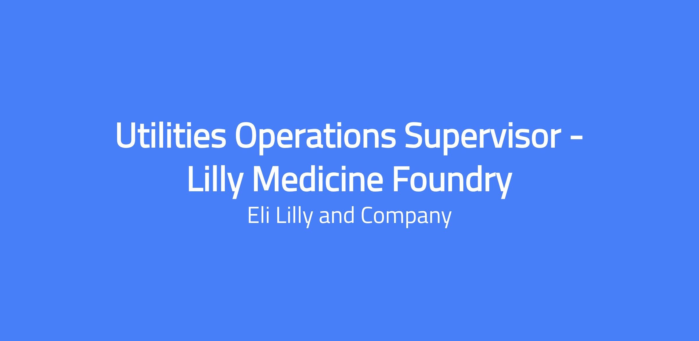 The Utilities Operations Supervisor (Lilly Medicine Foundry) oversees utility operations, ensuring safe and uninterrupted generation and distribution of utility services to meet Foundry needs. This role leads and develops operators through hiring, training, coaching, and performance management, and is skilled in troubleshooting and implementing improvements. The position manages utility systems (high purity water, compressed air, steam, chilled water, glycol, city water and sewers) and monitors UMS alarms to maintain safe, compliant, and cost-efficient operations. Location initially at Lilly Technology Center, Indianapolis and/or Foundry Temporary Office (Carmel, IN); permanent location at the Lilly Medicines Foundry in Lebanon, Indiana.