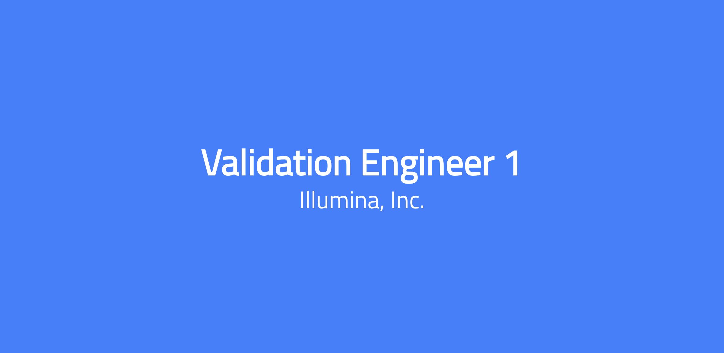 What if the work you did every day could impact the lives of people you know? Or all of humanity? At Illumina, we are expanding access to genomic technology to realize health equity for billions of people around the world. Our efforts enable life-changing discoveries that are transforming human health through the early detection and diagnosis of diseases and new treatment options for patients. Working at Illumina means being part of something bigger than yourself. Every person, in every role, has the opportunity to make a difference. Surrounded by extraordinary people, inspiring leaders, and world changing projects, you will do more and become more than you ever thought possible. We're seeking a driven and talented Validation Engineer to support manufacturing operations through close collaboration with cross‑functional partners. This role is critical in defining, implementing, and maintaining validation activities that ensure robust, compliant manufacturing processes and systems. The ideal candidate brings experience in quality engineering, process development, or process engineering, and can quickly develop while working independently within a fast‑paced, team‑oriented environment. As a Validation Engineer, you will play a key role in driving overall quality performance and compliance by leading validation deliverables and activities across manufacturing systems and processes. Responsibilities: Represent the Consumable Validation group as the validation subject matter expert in manufacturing operations value streams and project teams, ensuring validation requirements and deliverables are communicated to the teams. Develop and articulate robust strategies for validation of processes and systems through development and release of holistic validation plans. In collaboration with end users, process owners, quality engineers and other team members, develop validation protocols and oversee execution of IQ, OQ, PQ for manufacturing processes and systems. Write reports summarizing results and statistics for all equipment and process validation projects. Be accountable for timely completion of all validation deliverables in accordance with manufacturing needs and project timelines. Learn and understand the applicable technology and engage in technical discussions. Provide consultation to other departments performing validation activities. Provide input for creation of requirements documents. Actively participate in creation of risk management documents such as pFMEA for systems and processes. Perform job function in compliance with the internal procedures and applicable external regulations and standards, e.g. FDA QSR, ISO-13485. Initiate and execute controlled document change requests. Execute other related tasks assigned by the supervisor. Listed responsibilities are an essential, but not exhaustive list, of the usual duties associated with the position. Changes to individual responsibilities may occur due to business needs. Experience: 1-2 years of related Validation experience in the life science industry (i.e. medical device/IVD, pharmaceutical, biotech) is preferred. Knowledge and working application of FDA and cGMP requirements. Knowledge and working application of validation principles and guidelines and industry practice, FMEA, and Risk Management. Knowledge and application of statistical techniques as a decision-making tool and practical experience in use of statistical analysis software JMP highly desirable. Knowledge and working application of standard operating procedures. Demonstrated ability to accomplish goals in collaboration with cross-functional teams. Demonstrated analytical problem-solving skills. Computer competency in MS Office. Excellent interpersonal, written, and verbal communication skills. Adaptable to fast-paced, dynamic work environment with ability to manage projects methodically. ValGenesis eVLMS and Teamcenter PLM experience is a plus. Education: Requires a bachelor’s degree or master’s degree in engineering or science. 1-2 years of related experience is preferred. The estimated base salary range for the Validation Engineer 1 role based in the United States of America is: $62,900 - $94,300. Should the level or location of the role change during the hiring process, the applicable base pay range may be updated accordingly. Compensation decisions are dependent on several factors including, but not limited to, an individual’s qualifications, location where the role is to be performed, internal equity, and alignment with market data. Additionally, all employees are eligible for one of our variable cash programs (bonus or commission) and eligible roles may receive equity as part of the compensation package. We offer a wide range of benefits as innovative as our work, including access to genomics sequencing, family planning, health/dental/vision, retirement benefits, and paid time off. We are a company deeply rooted in belonging, promoting an inclusive environment where employees feel valued and empowered to contribute to our mission. Built on a strong foundation, Illumina has always prioritized openness, collaboration, and seeking alternative perspectives to propel innovation in genomics. We are proud to confirm a zero-net gap in pay, regardless of gender, ethnicity, or race. We also have several Employee Resource Groups (ERG) that deliver career development experiences, increase cultural awareness, and offer opportunities to engage in social responsibility. We are proud to be an equal opportunity employer committed to providing employment opportunity regardless of sex, race, creed, color, gender, religion, marital status, domestic partner status, age, national origin or ancestry, physical or mental disability, medical condition, sexual orientation, pregnancy, military or veteran status, citizenship status, and genetic information. Illumina conducts background checks on applicants for whom a conditional offer of employment has been made. Qualified applicant