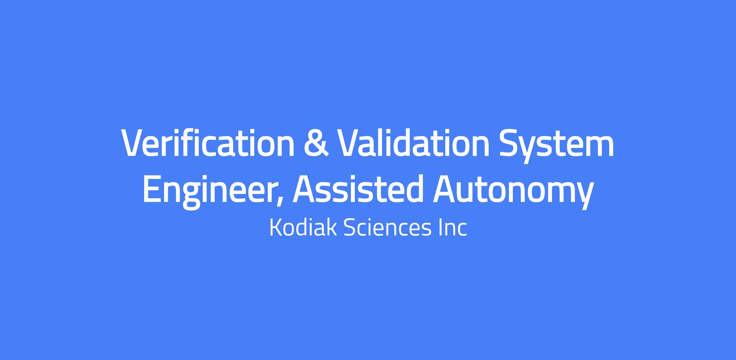 We are recruiting for a Verification and Validation Systems Engineer who will support the system requirements, implementation, and testing of Kodiak’s assisted autonomy system to ensure the product requirements are met and the autonomous vehicle operates safely.Â