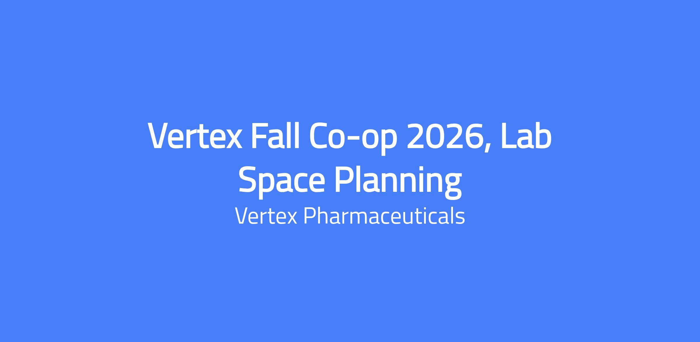 Vertex Lab Space Planning Co-op is a six-month experiential training program for students pursuing an undergraduate degree in Facilities Management, Architecture, or related fields. If you are passionate, collaborative, and growth-minded, a Vertex co-op will provide meaningful experience in our Facilities and Operations functional areas and serve as a launchpad for your career. The role involves supporting lab space requests, moving and lab programming, and coordinating with cross-functional teams to prepare for a large-scale lab move in Vertex's new building. This position requires on-site work in Boston, MA, and full-time availability JulyโDecember 2026.