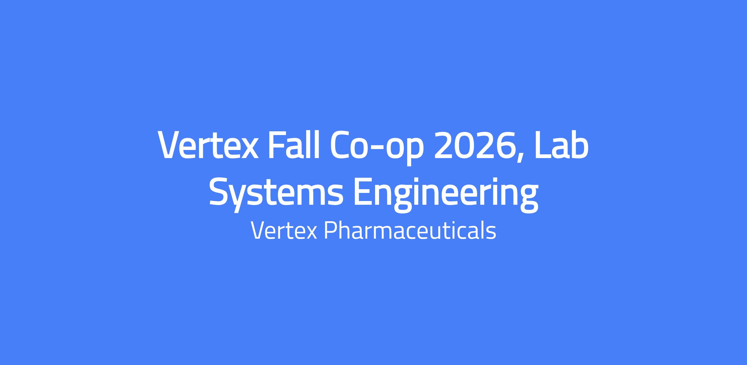 The Vertex Lab Systems Engineering Co-Op program is a 6-month experiential training program for students pursuing undergraduate or advanced degrees in Information Systems, Engineering, Hard Sciences (Chemistry, Biology, Bioengineering), Data Analytics, Supply Chain, or related fields. The co-op offers hands-on exposure within DTE - RPMS Lab Solutions to explore asset tracking of laboratory hardware and software, with a focus on improving visibility into asset location, usage, and lifecycle to support compliance, sourcing decisions, and operational efficiency.
