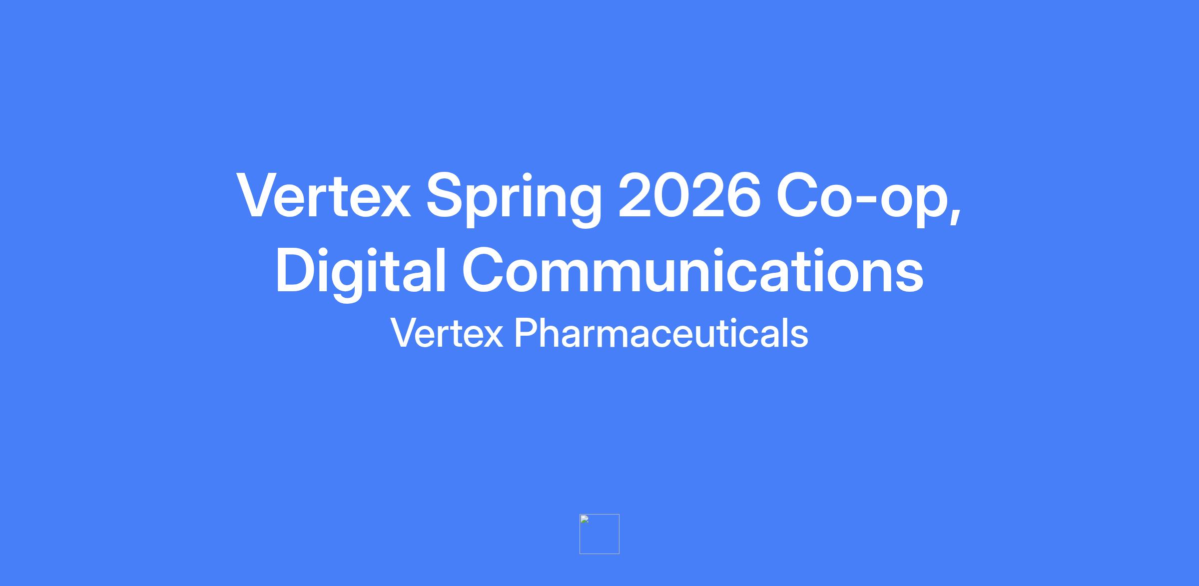 Vertex Spring 2026 Co-op, Digital Communications. The program is a 6-month experiential training opportunity for students pursuing undergraduate or graduate degrees in Marketing, Communications, Digital Marketing/Communications, Public Relations, Business, Project Management, or related fields. The co-op provides hands-on experience in Vertexβs digital communications, including content creation, digital strategy, audience targeting, and analytics across social media, the corporate website, and other channels.