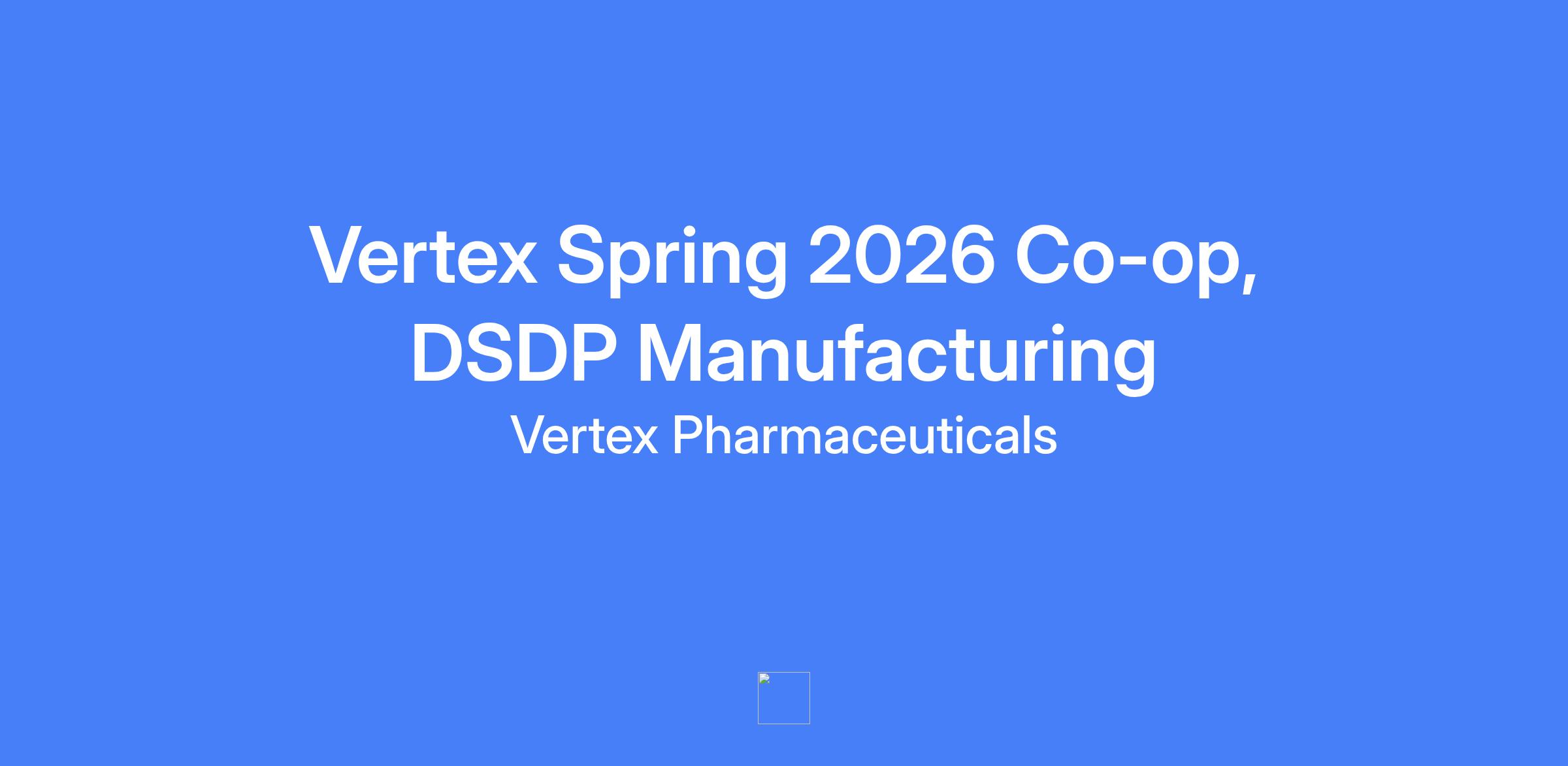 Vertex Spring 2026 Co-op, DSDP Manufacturing — a 6-month experiential training program for students pursuing undergraduate or advanced degrees in cell biology, chemistry, engineering, or related fields. The role focuses on improving clinical and commercial product manufacturing for cell therapy according to cGMP standards and serves as a launchpad for your career in manufacturing.