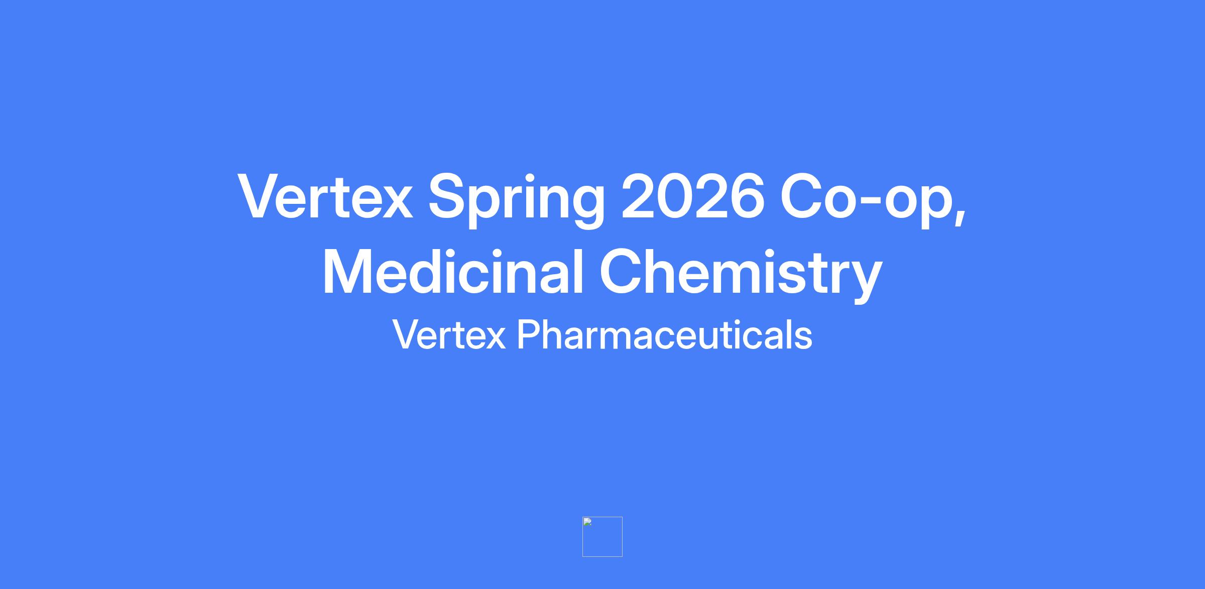 Vertex Spring 2026 Co-op, Medicinal Chemistry role with a 6-month program for students pursuing an undergraduate or advanced degree in Chemistry or related fields. The co-op will conduct high level organic chemistry research in the Medicinal Chemistry department, with opportunities to interact with scientists across the department and publish work in a peer-reviewed journal. This is a lab-based role aimed at providing meaningful experience and launching a career in the field.