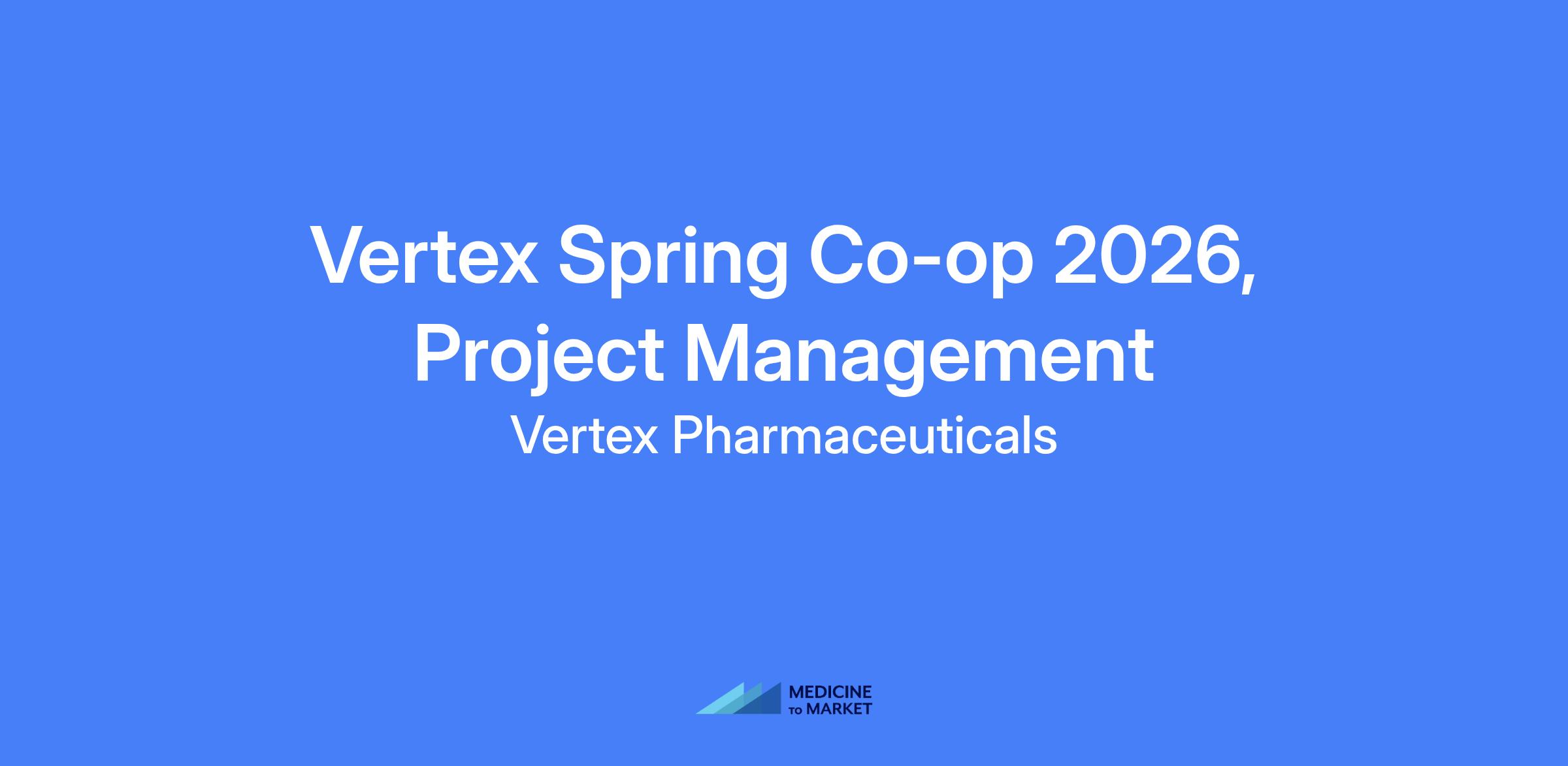 Vertex Spring Co-op 2026, Project Management โรรฎ 6-month experiential co-op focusing on project management within the Project Management and Strategy Operations organization supporting Commercial Manufacturing and Supply Chain. Opportunity to work on process optimization projects, learn from industry leaders, and launch a career in project management.
