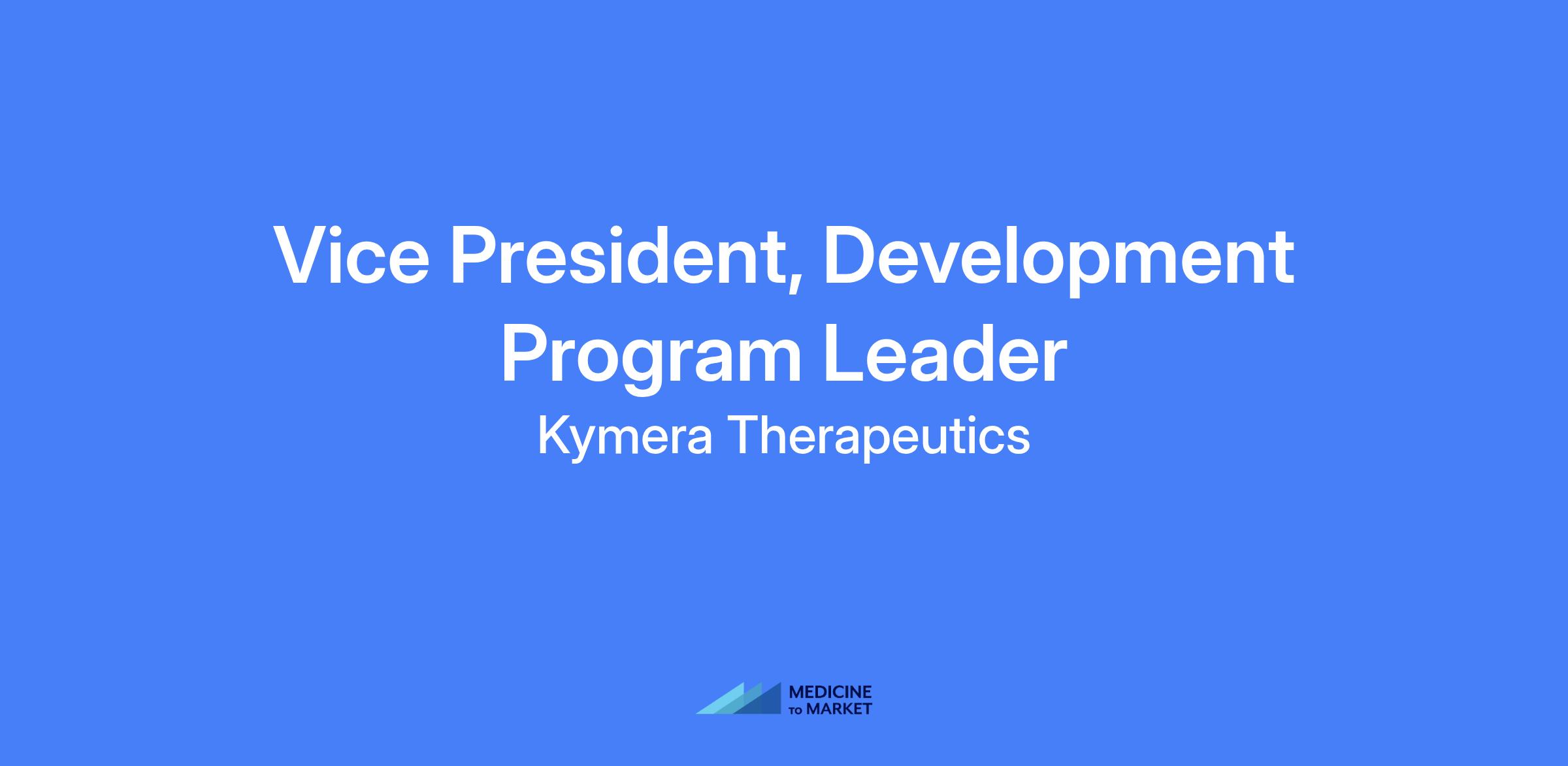 Vice President, Development Program Leader at Kymera Therapeutics. Lead cross-functional program teams to advance therapeutic programs through development milestones, represent programs to executive leadership, and drive strategy and execution to meet corporate goals.
