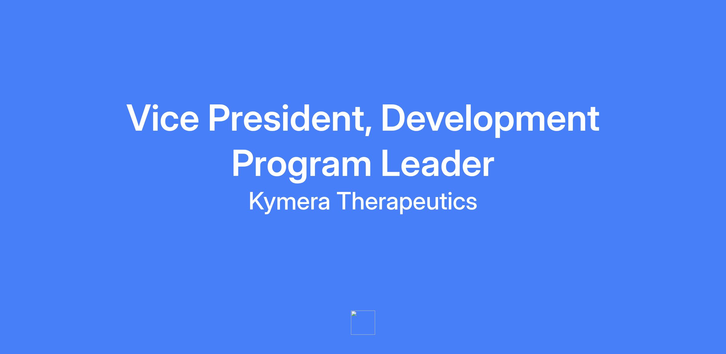 Vice President, Development Program Leader at Kymera Therapeutics. Lead cross-functional program teams to advance therapeutic programs through development milestones, represent programs to executive leadership, and drive strategy and execution to meet corporate goals.