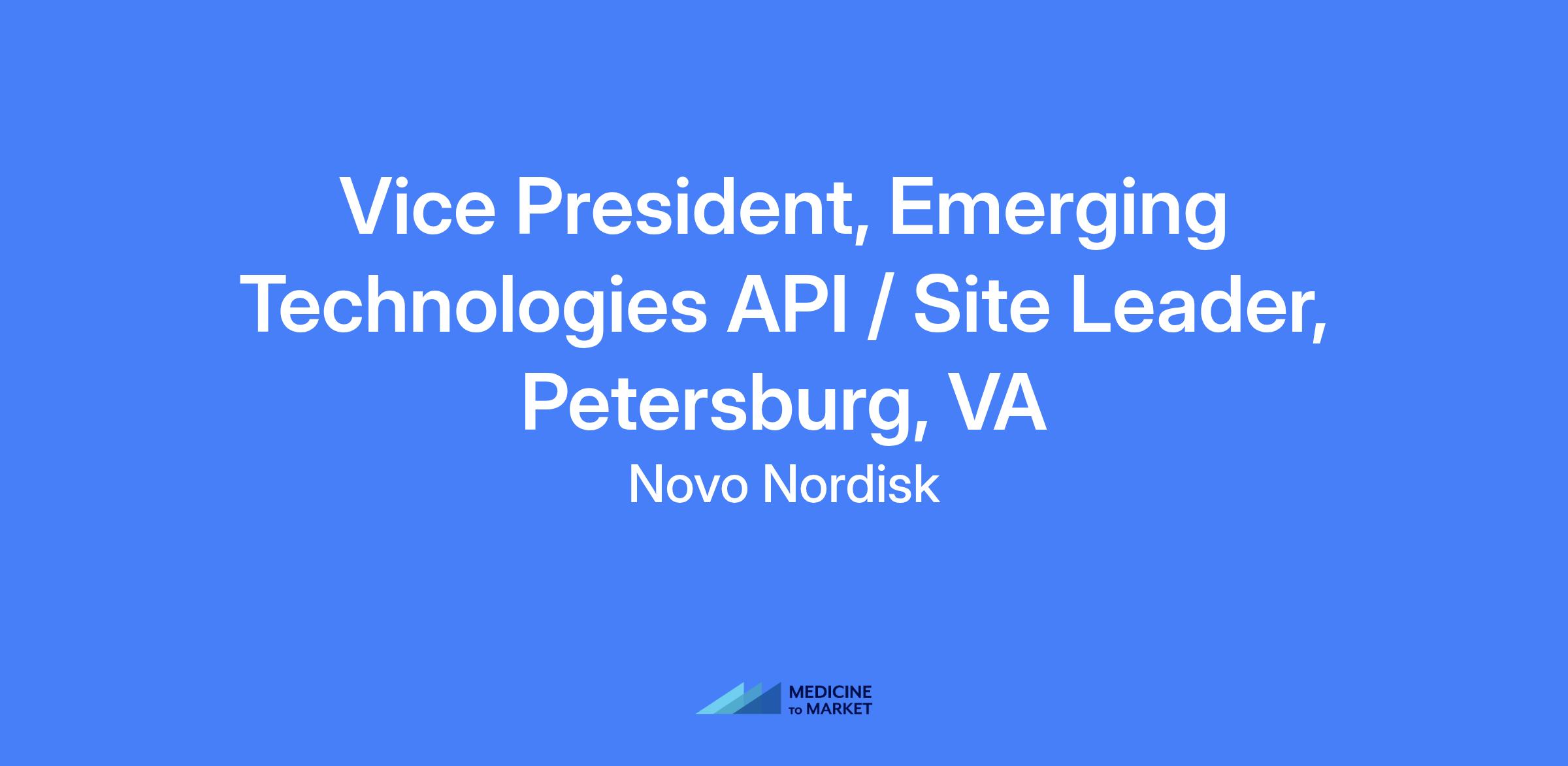 Vice President, Emerging Technologies API / Site Leader, Petersburg, VA — Lead and manage the Emerging Technologies (ET) / Active Pharmaceutical Ingredient (API) production site in Petersburg, VA to meet or exceed short- and long-term objectives for production, quality, and financial results, ensuring regulatory compliance and alignment with Novo Nordisk Way of Management.