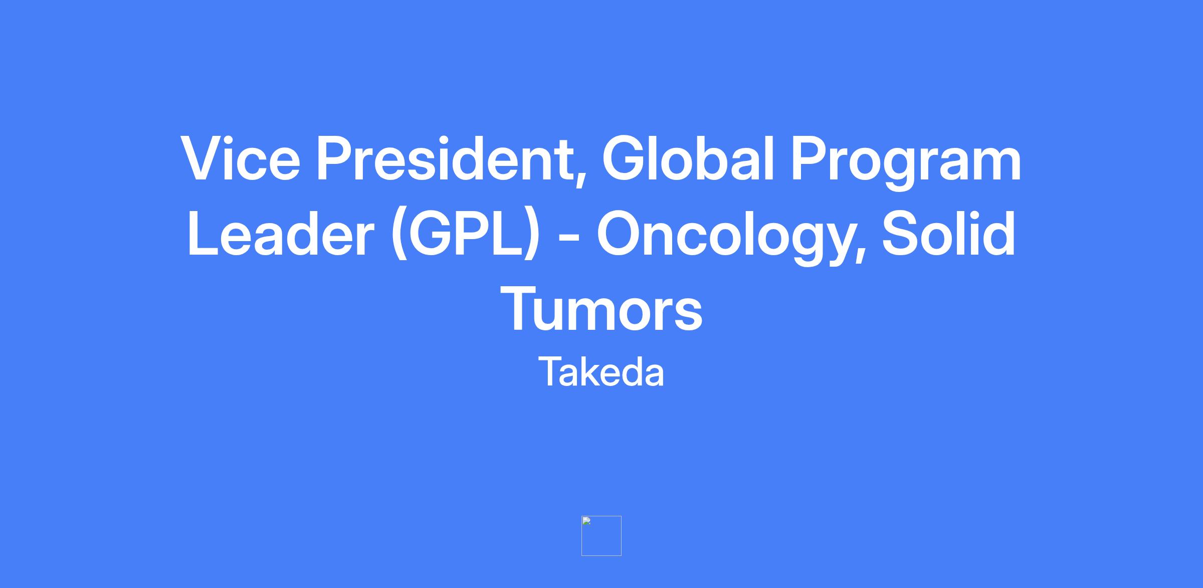 Vice President, Global Program Leader (GPL) - Oncology, Solid Tumors