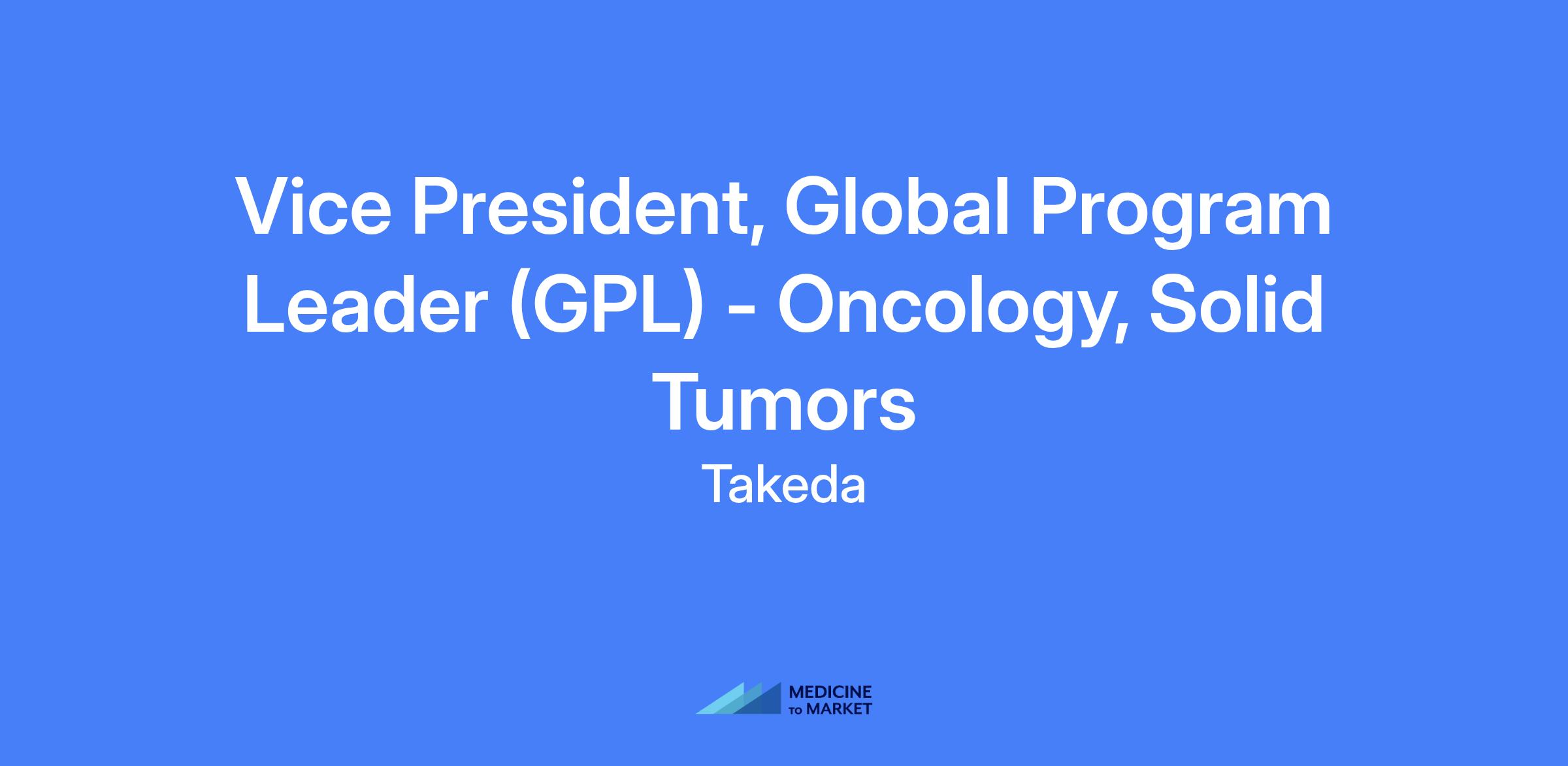 Vice President, Global Program Leader (GPL) - Oncology, Solid Tumors
