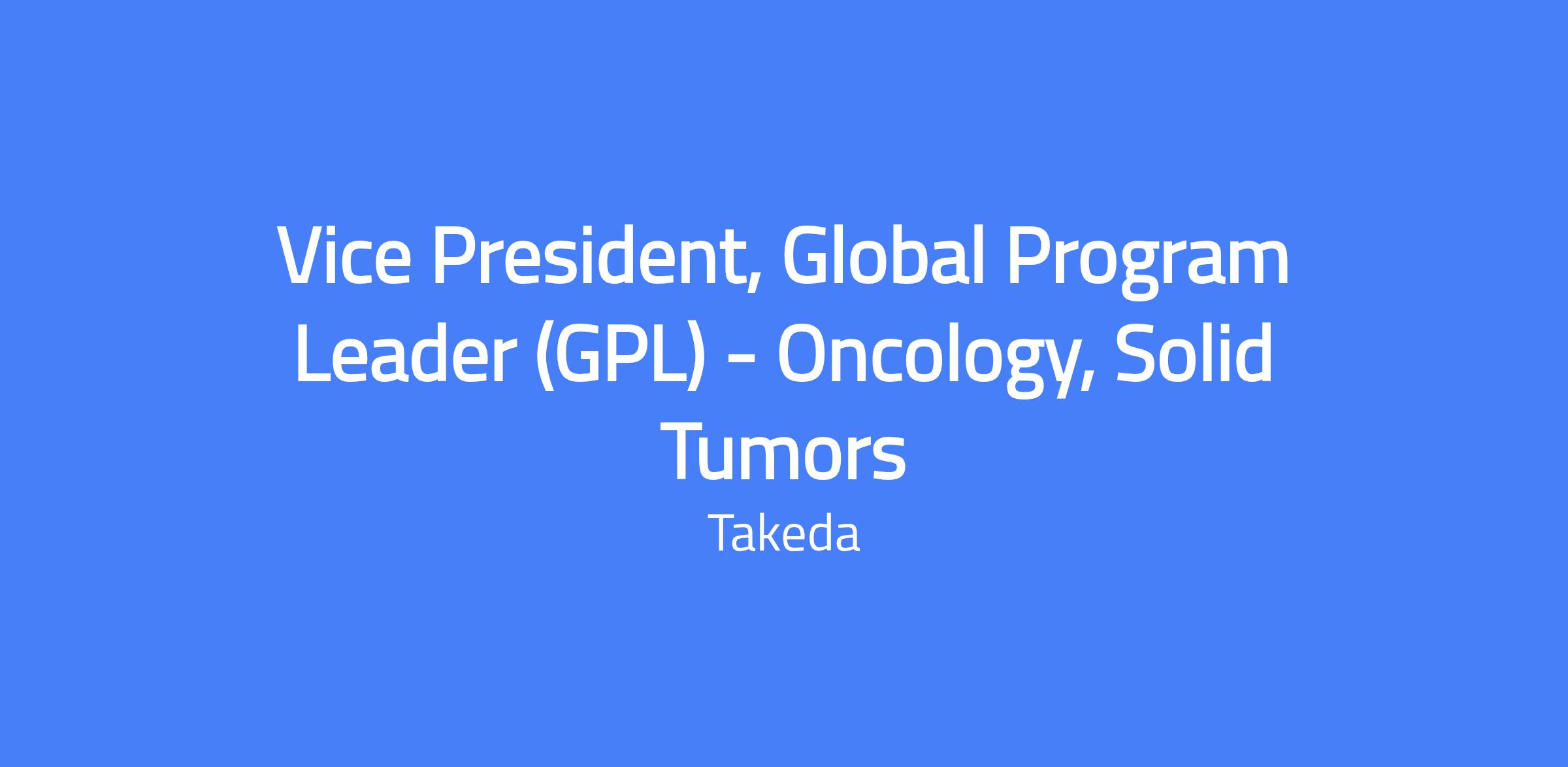 Vice President, Global Program Leader (GPL) - Oncology, Solid Tumors