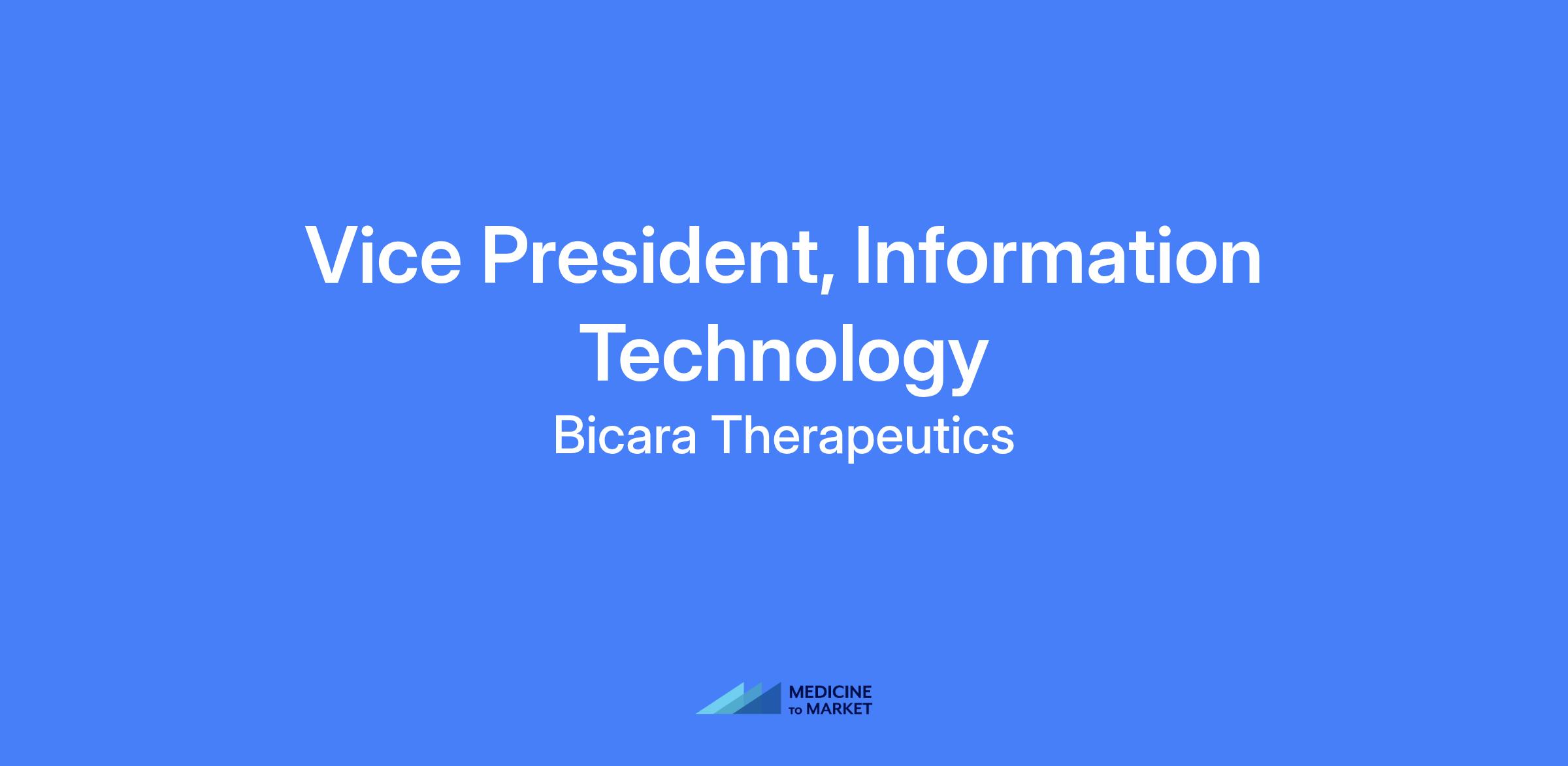The Vice President, Information Technology (IT) will lead the design, development, and execution of an IT strategy that drives growth, innovation, and operational excellence across the company. This role requires a highly strategic, adaptable, and technically proficient IT leader to manage Bicara's IT landscape, ensuring compliance, security, and scalability in a regulated, high-growth biotech environment. This role is based in our Boston office and follows a hybrid schedule, with three in-office days each week.
