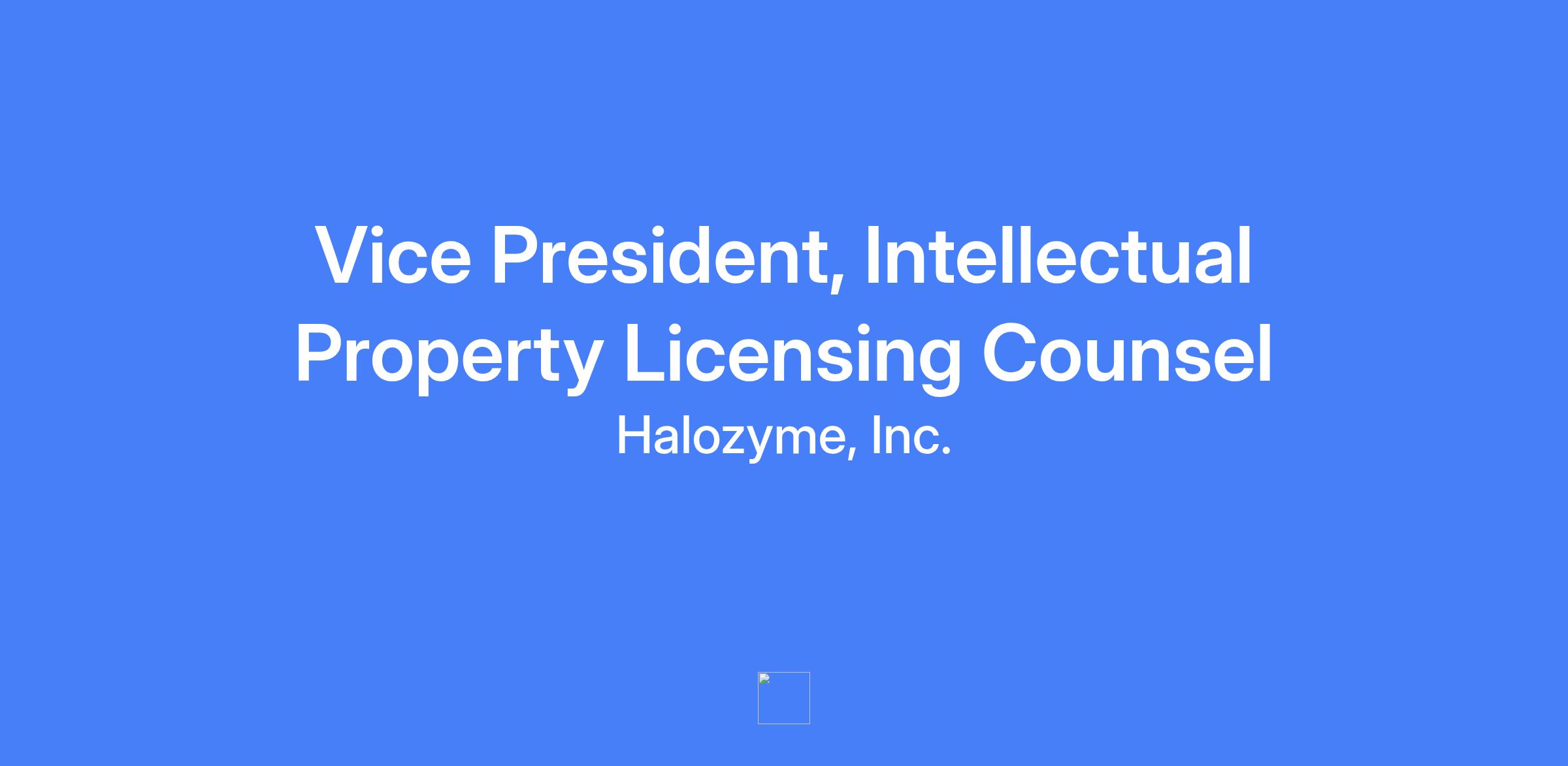 Vice President, Intellectual Property Licensing Counsel at Halozyme. Leads IP licensing strategy and negotiations to support Halozyme’s technology licensing businesses, including ENHANZE and MDASE drug delivery technologies, auto-injector technologies, and future licensed technologies. Collaborates with business development, manages licensing transactions, and provides IP counsel across strategic initiatives.