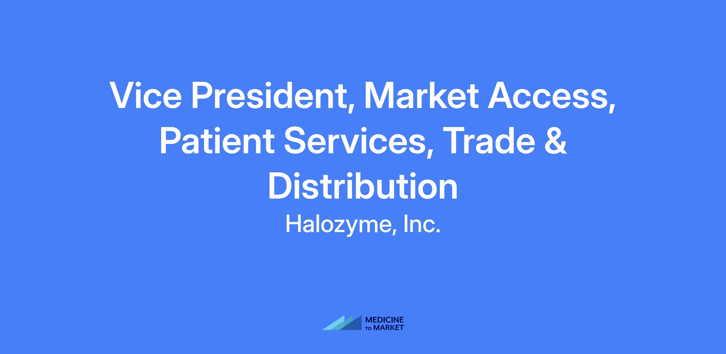 Vice President, Market Access, Patient Services, Trade & Distribution. Based in Ewing, New Jersey. Lead the development and execution of commercial and government market access strategy and trade relations to improve patient access and affordability for Halozyme products, drive profitability, and optimize channel, trade, and distribution.