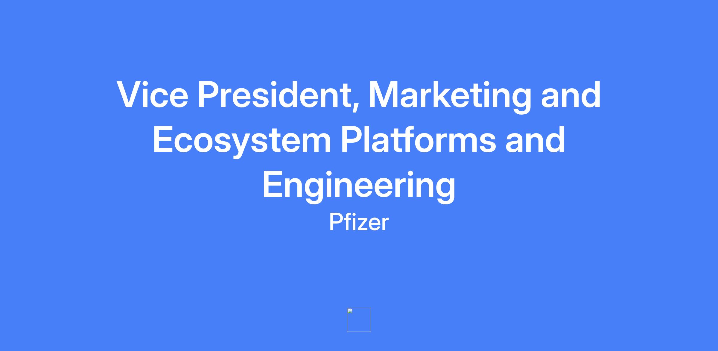 Vice President, Marketing and Ecosystem Platforms and Engineering. This role leads the strategy, design, and delivery of digital, technology, and data platforms powering Pfizerโs Marketing and Ecosystem initiatives, overseeing a global engineering organization and ensuring security, privacy, and operational excellence.