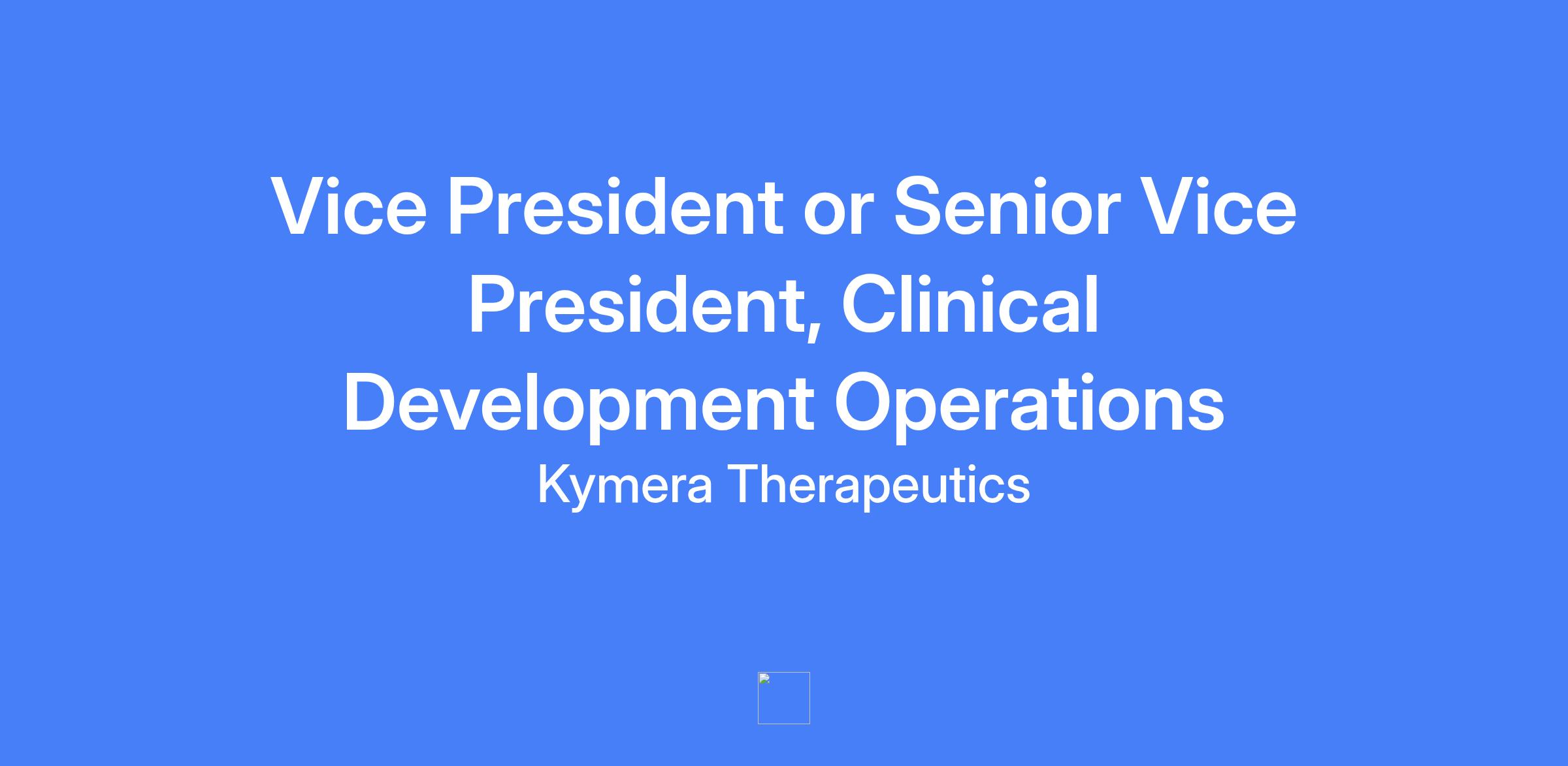 Vice President or Senior Vice President, Clinical Development Operations. Provide visionary leadership across Clinical Development Operations, overseeing end-to-end global trial execution across multiple programs and phases with a focus on quality, timeliness, and budget adherence. Build and scale operational capabilities, collaborate cross-functionally to align program strategy with operational delivery, and lead vendor strategy and governance for external partners.