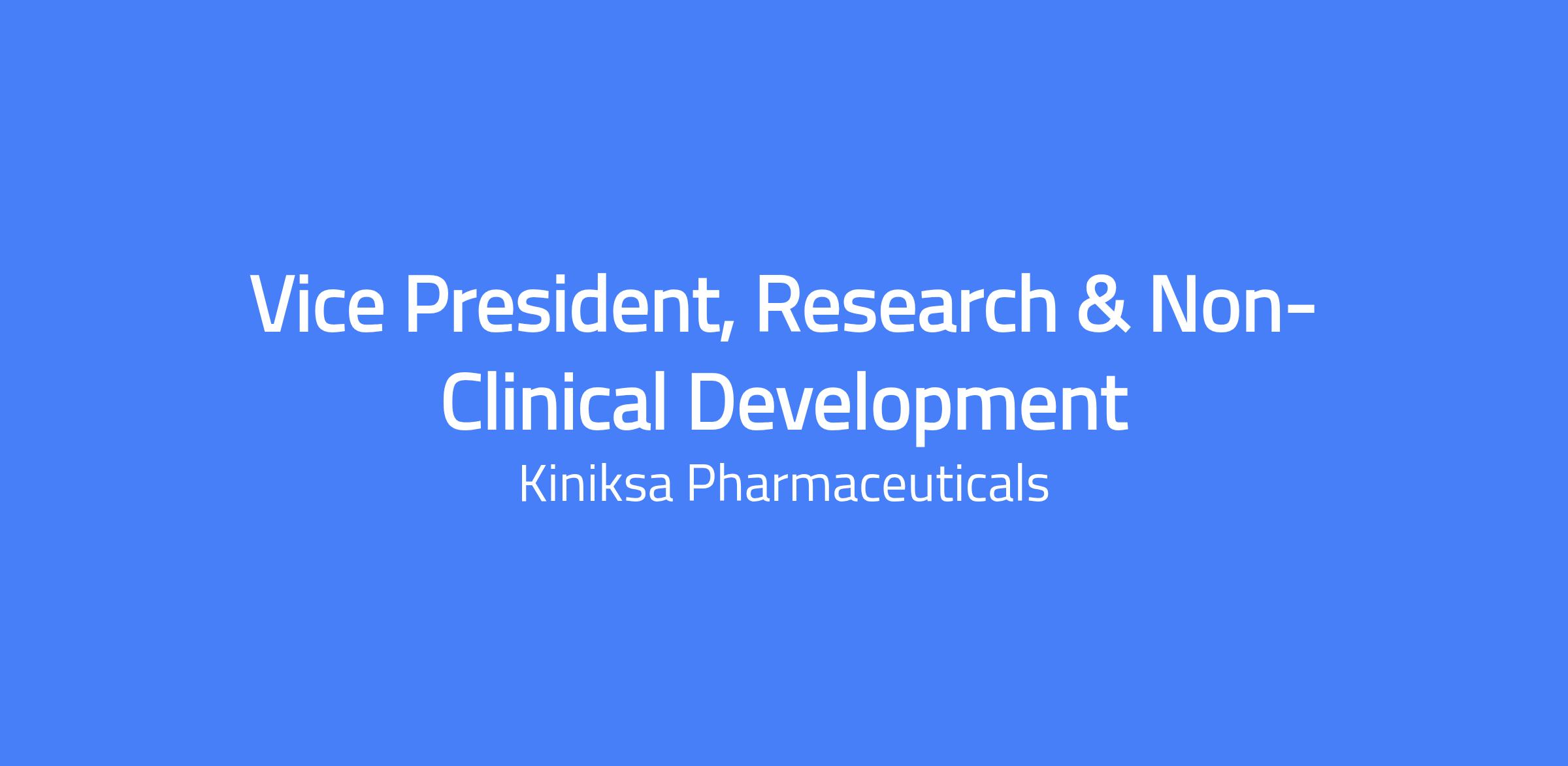 Kiniksa is seeking a Vice President of Research & Non-clinical Development to join our innovative team and accelerate drug candidates to approval. Reporting to the Chief Operating Officer, the incumbent will drive pre-clinical and translational activities for Kiniksaβs pipeline of biologics programs within autoimmune and cardiovascular therapeutic areas. A successful candidate will bring extensive experience providing strategic and scientific leadership for research teams spanning preclinical, biomarker and early clinical development. The ability to lead multiple, different workstreams with a focus on teamwork and ownership in a fast-paced and agile environment will be essential. Operational leadership, often with a hands-on approach to effectively execute on project plans in a lean organization, is essential for this position.