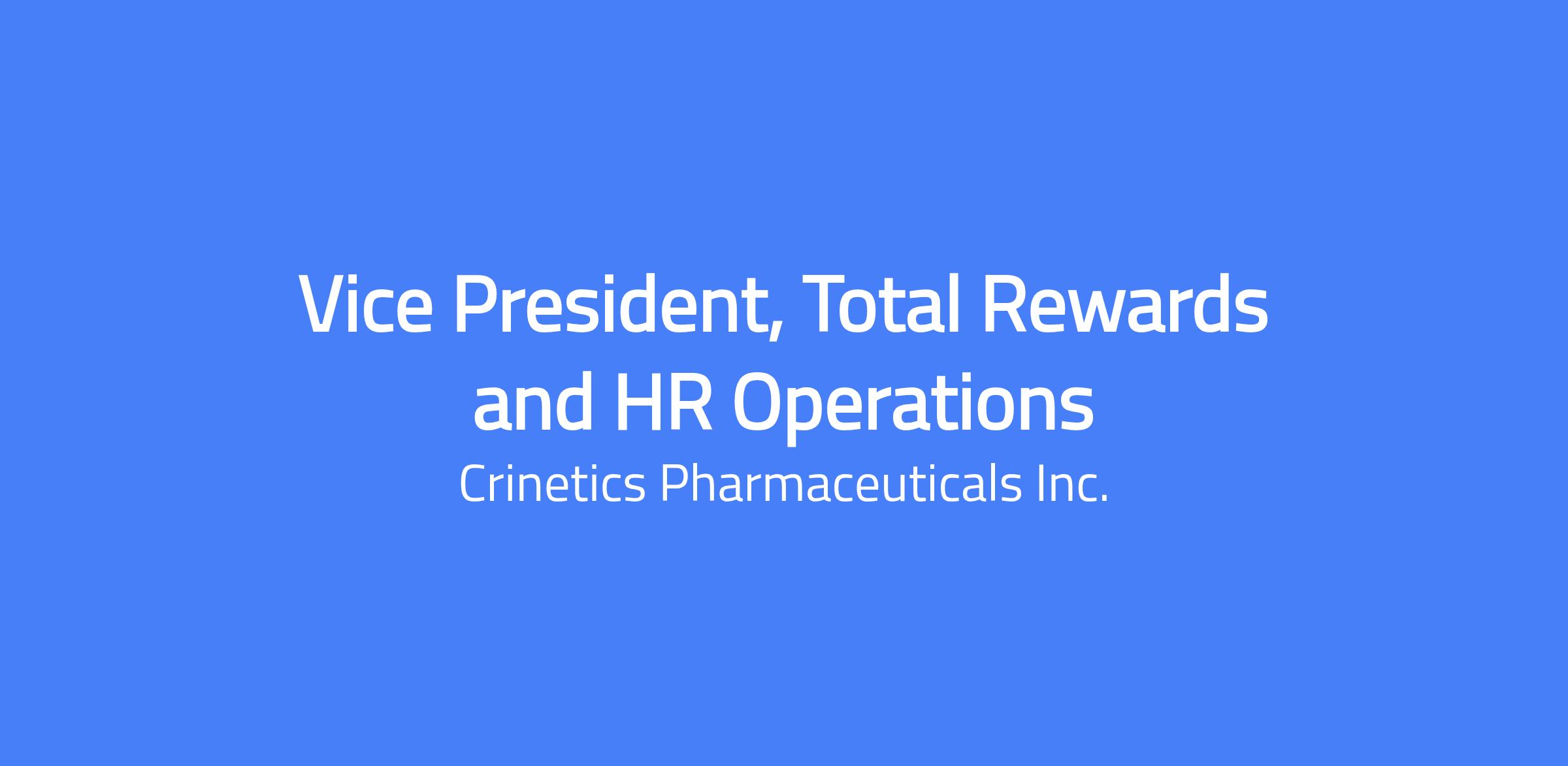 Crinetics is a pharmaceutical company based in San Diego, California, developing much-needed therapies for people with endocrine diseases and endocrine-related tumors. We were founded by a dedicated team of scientists with the simple belief that better therapies developed from rigorous innovation can lead to better lives. Our work continues to make a real difference in the lives of patients. We have a prolific discovery engine and a robust preclinical and clinical development pipeline. We are driven by science with a patient-centric and team-oriented culture. Crinetics is known for its inclusive workplace culture. We are also a dog-friendly workplace. This is an exciting time to join Crinetics as we shape our organization into the world’s premier fully integrated endocrine company from discovery to patients. Join our team as we transform the lives of others. Position Summary: The Vice President, Total Rewards & HR Operations will strategically lead the Compensation, Benefits, and HR Operations functions within the Human Resources department. Reporting to the Chief Human Resources Officer, this role is accountable for evolving Crinetics’ total rewards philosophy and programs to support the company’s continued growth and increasing organizational complexity. This leader will serve as an internal subject matter expert for compensation, benefits, wellness, HR operations, and HR systems; drive scalable, compliant processes and controls; and build a high-performing team and operating model that deliver exceptional employee experience in a complex, multi-state environment. Essential Job Functions and Responsibilities: These may include but are not limited to: Strategy & Governance Lead all strategic global compensation, benefits and HR operations processes, including salary planning and administration, variable pay development and administration, benefits/wellness programs, annual benefits design/open enrollment, and HRIS/HR operations. Create and implement functional strategic plans (3-5 years), associated budget and staffing for the Total Rewards & HR Operations functions. Lead and develop a high-performing Total Rewards & HR Operations team. Serve as a subject matter expert and trusted partner, owning the total rewards philosophy and approach. Serve on HR Leadership Team and model leadership for HR function, acting as an enterprise leader across Crinetics Compensation, Executive & Equity Programs Prepare materials for Board of Directors’ Compensation Committee meetings and participate as required in collaboration with Finance, Legal, Tax, and external advisors. Develop executive offers and continually enhance the offer process in collaboration with Talent Acquisition for optimal effectiveness and efficiency in accordance with Total Rewards principles. Promote pay equity and pay transparency initiatives to strengthen organizational trust and mitigate reputational risk. Partner with Stock Administration and other internal partners to manage equity incentives and the Employee Stock Purchase Program (ESPP), driving program effectiveness and enterprise-wide understanding. Benefits & Wellness Lead the design, administration, vendor management, and compliance of U.S. and international benefits and wellness programs, ensuring cost effectiveness, compliance, and marketplace competitiveness. Work in partnership with insurance consultants to ensure compliance with federal, state, and other regulatory agencies and to limit company exposure to liability associated with fiduciary responsibilities. Remain current on benefits and employment law changes and trends; proactively recommend actions needed to comply with U.S. employment laws, governmental agency requirements, fiduciary requirements pertaining to U.S. benefit plans, and international benefits programs as applicable. HR Operations & HRIS Own the HR Operations and HRIS roadmap, driving scalable, compliant processes, strong controls, and high data integrity across the employee lifecycle. Lead the use of AI across HR systems to improve workforce planning, personalize rewards, and strengthen insights into engagement and turnover. Implement AI/ML solutions to automate HR operations, improve data quality, and increase shared services efficiency. Ensure HR operations and systems comply with legal requirements and organizational standards in the pharmaceutical industry. Policy, Compliance & Market Intelligence Develop and implement policies that align with Crinetics’ people strategy and ensure total rewards programs are competitive with market practices and comply with federal and state laws. Benchmark across all areas of total rewards to elevate understanding of current and future competitiveness; maintain market intelligence on pay transparency, internal equity, and emerging rewards practices. Oversee development of communication materials and training to educate managers and employees on total rewards philosophies, programs, and value. Facilitate required government reporting, non-discrimination testing, and required employee communications. Other duties as assigned. Education and Experience: Required: Bachelor’s degree, with 15+ years of progressive experience in compensation, equity, benefits, and HRIS (An equivalent combination of experience and education may be considered). Minimum of 14 years’ experience managing and developing people. Must have Life Science/Pharmaceutical industry experience. Highly preferred to have worked at a fast-paced Biotech or Life Science organization, bringing credibility, energy and enthusiasm to the Human Resources function, founded in sound strategy and long-term success. Experience managing HR systems (preferably Workday) and demonstrate process improvements and systems optimization. Roll-up-your-sleeves mentality, as this is a senior leadership position but heavily involved in individual contributor work with a desire to build next level services. Exceptional executive presence and communication skills,