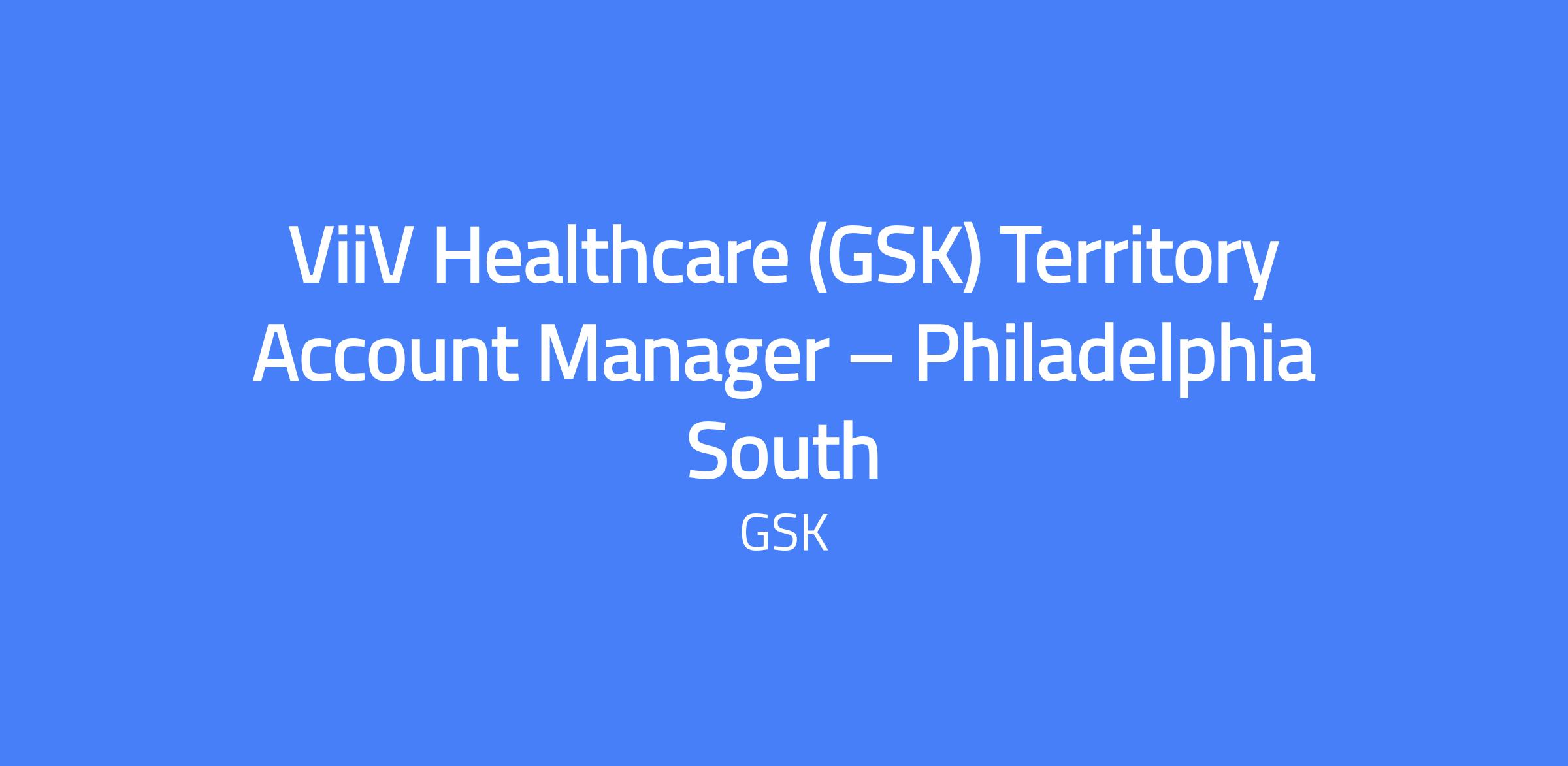 ViiV Healthcare (GSK) Territory Account Manager β Philadelphia South