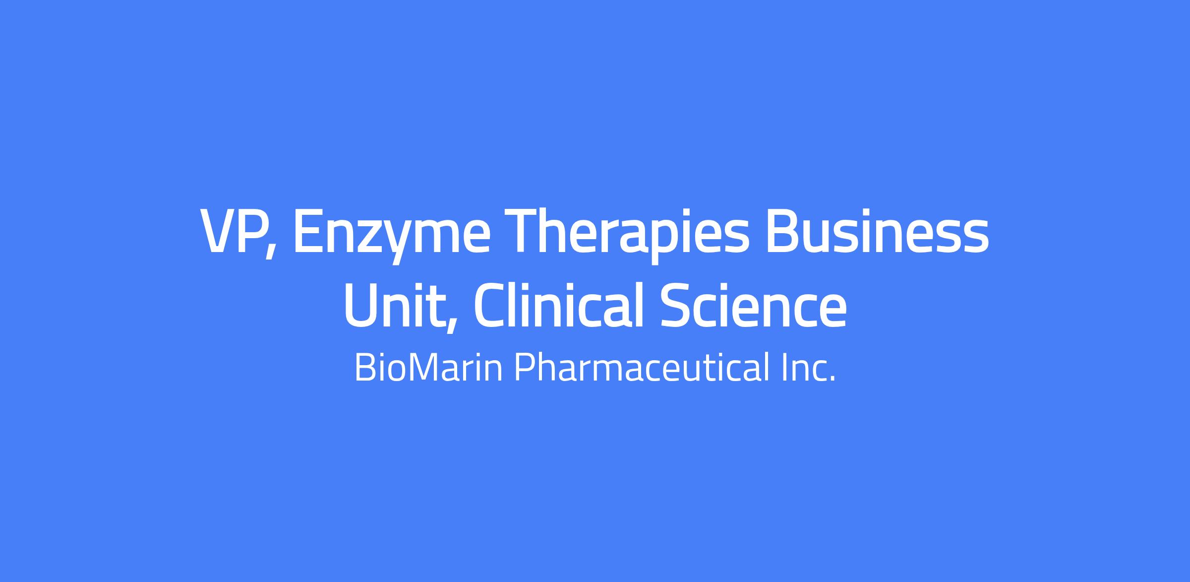 The Vice President, Enzyme Therapies, Clinical Development is the head of R&D for BioMarin’s Enzyme Therapies Business Unit (BU), responsible for overall strategic direction, development, and lifecycle management of BU pipeline assets.