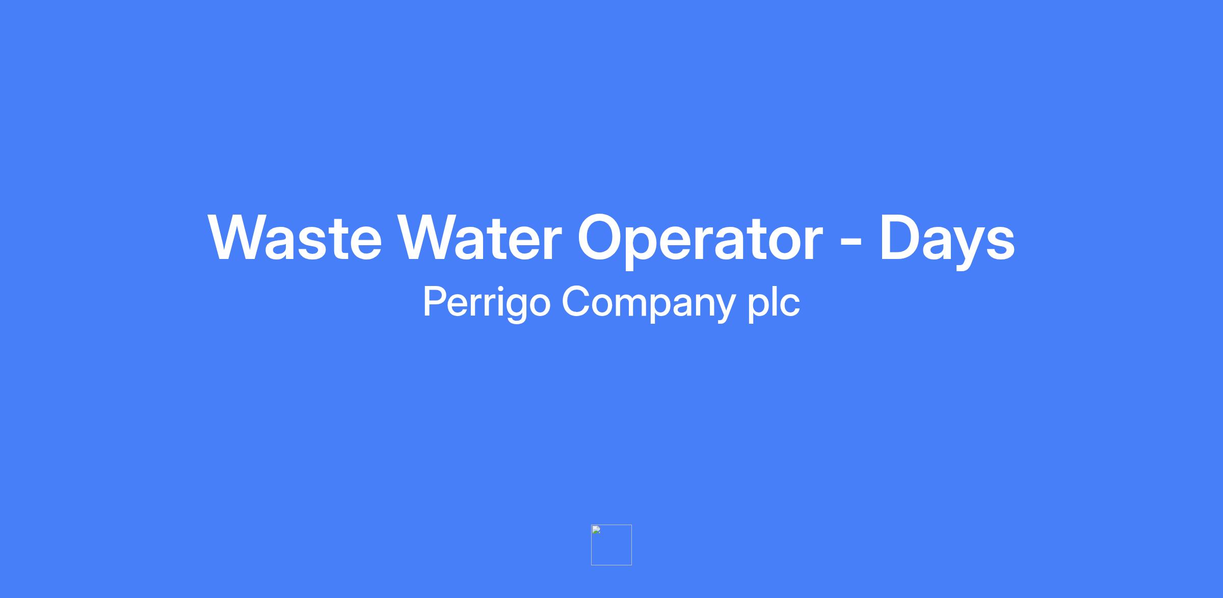 Waste Water Operator - Days. Perrigo Nutritionalโs in Georgia, VT is hiring two Wastewater Operators (one full-time, one part-time) with a rotating schedule. The role involves operating and maintaining the treatment facility to meet regulatory and corporate requirements, monitoring processes, performing daily lab testing, and repairing equipment.